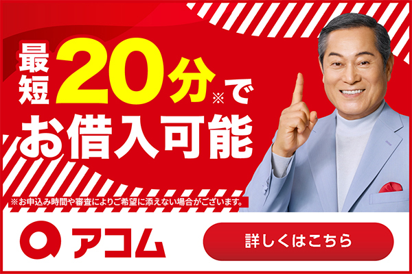 ![]() アコム | 契約日の翌日から30日間無利息※ 最短20分※1で融資が完了する 返済方法が豊富 | 詳細はこちら |
