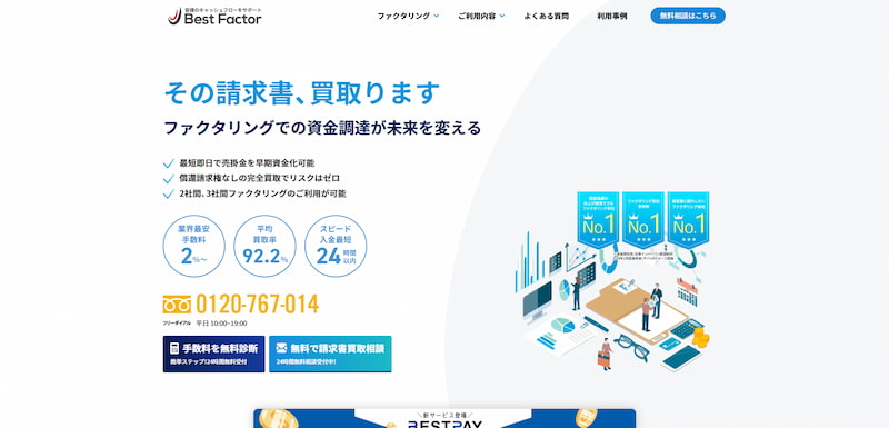 ファクタリングにとどまらず、財務コンサルティングや助成金・補助金申請サポート、M&Aなど幅広い経営支援サービスも提供しており、資金繰りの根本的な改善を目指す個人事業主にも心強い存在です。