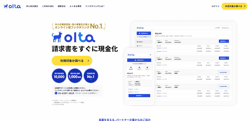 OLTA(オルタ)は、2017年設立の国内初のオンライン完結型クラウドファクタリングサービスです。